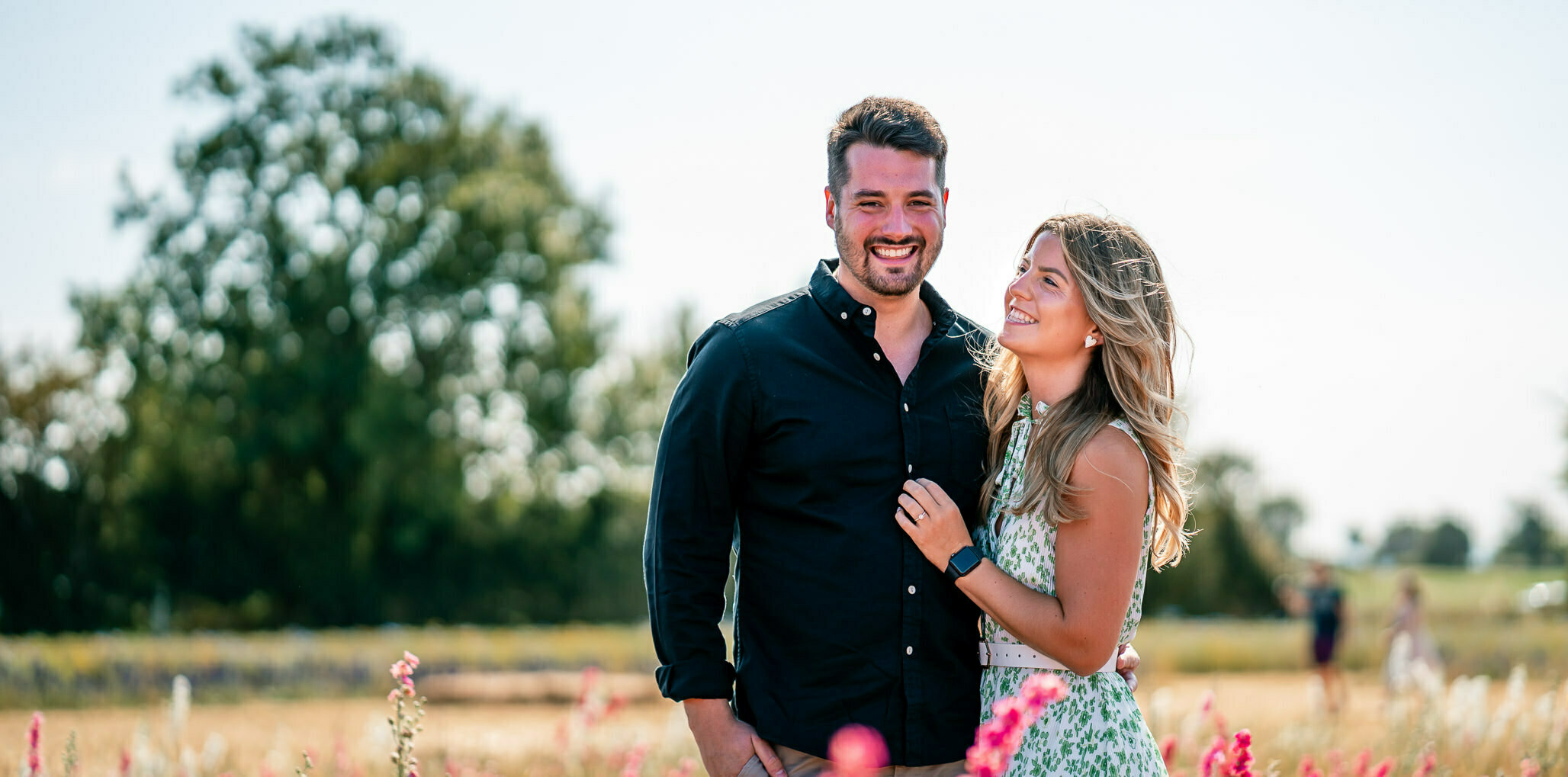 Laura and Dan booked their confetti fields engagement shoot and were so lucky to book it on the best day. Glorious sunshine and warm weather, their shoot was relaxed and fun. We all walked through the fields and I  captured the images, letting them have a great morning just being themselves.